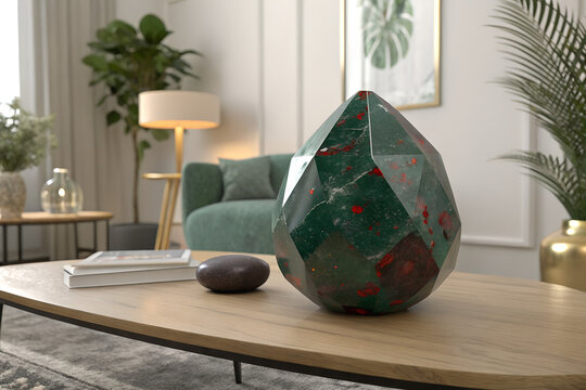 Cut or faceted Bloodstone gemstone - traditional March birthstone. Created with Generative AI technology
