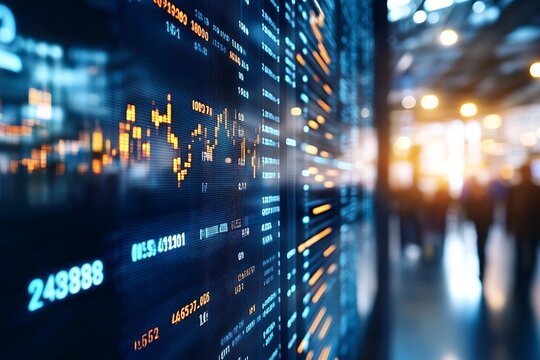 Illuminated Stock Market Data Board with Financial Indices and Trading Figures : Generative AI
