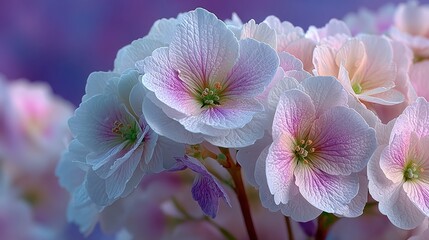 Close - up of Delicate Hydrangea Flowers with Soft Purple and White Petals, Perfect for Floral Design Projects