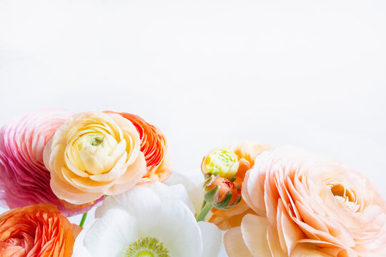 Watercolor Floral Background. Hand painted border of flowers. Good for invitations and greeting cards. Frame isolated on white and brush lettering. Rose, poppy and peony illustration Spring blossom