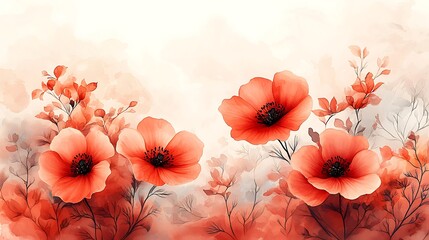 A close-up of beautiful red flowers blooming in flowerbeds against a dark, moody floral background, creating a photorealistic effect,
