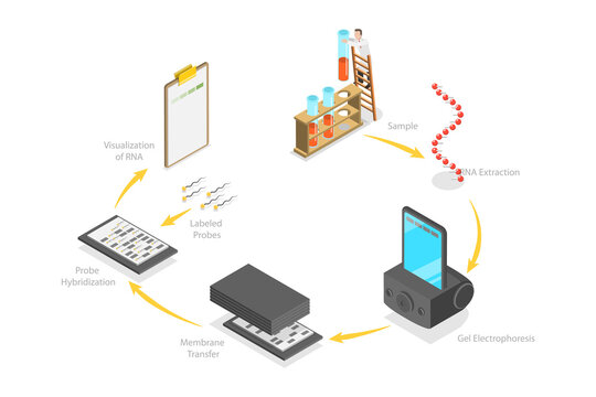 3D Isometric Flat  Conceptual Illustration of Northern Blot, Educational Diagram
