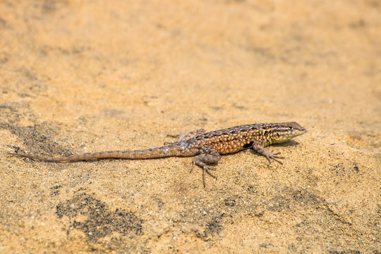 Side blotched lizard on rock in California