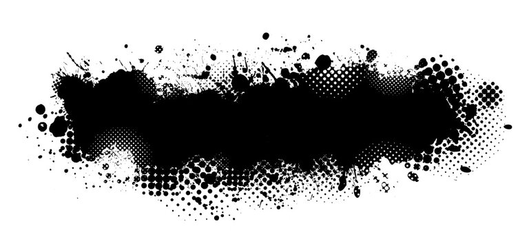 An abstract grunge frame with black ink splatter creates a dirty, dark texture design and pattern illustration