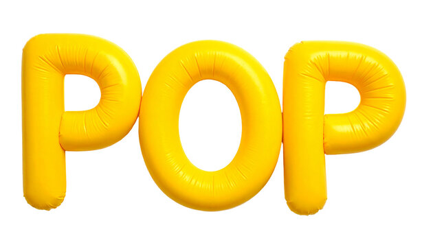 Yellow inflatable "POP" letters isolated on a transparent black background