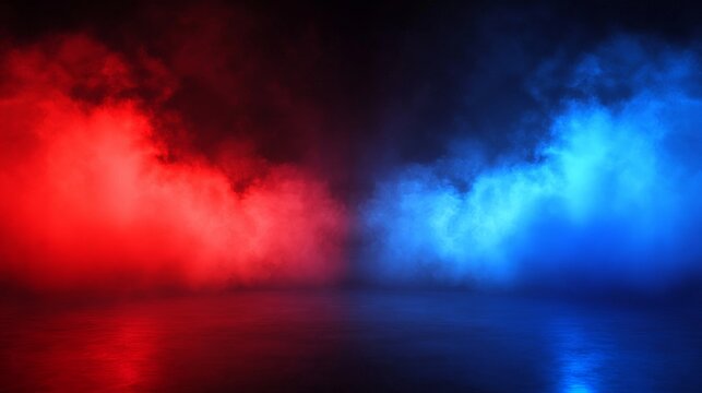 Red and blue smoke clouds on black transparent background with neon glow effect for sport versus concept. Realistic 3d vector two color fog for game vs confrontation or police car light design.