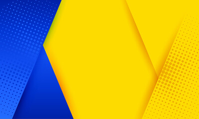 Blue yellow ukrainian flag colors vector background design with halftone dots. Paper cut style blue yellow background with halftone dots patterns.