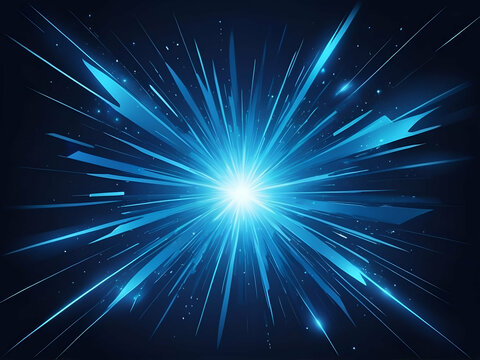 A vibrant blue burst of light radiating outward, creating a dynamic and energetic atmosphere.