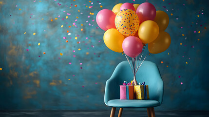 An empty blue room with a blue floor idea is home to a blue chair. Generative AI