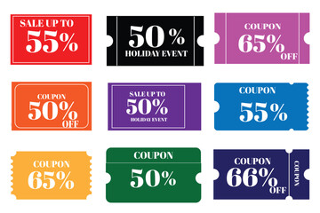 Set of coupon ,ticket card,gift vouchers.Coupon Card element template for graphics design.Gift vouchers or certificates of promotion sale 10 percent discount.Vector templates.