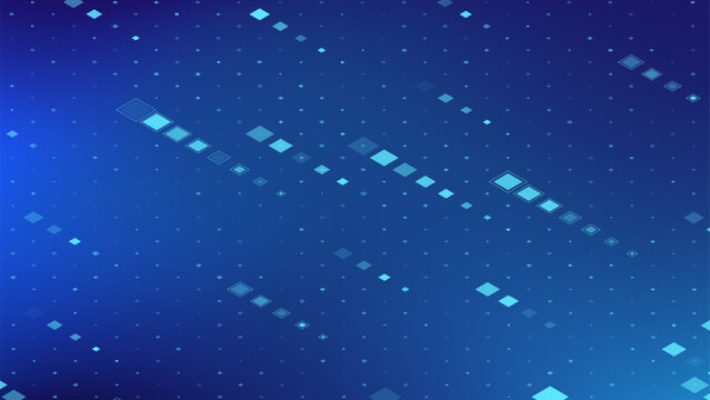 Creative blue digital grid background blurry business interface. Technology, communication, connection, web and science concept. 3D Rendering.