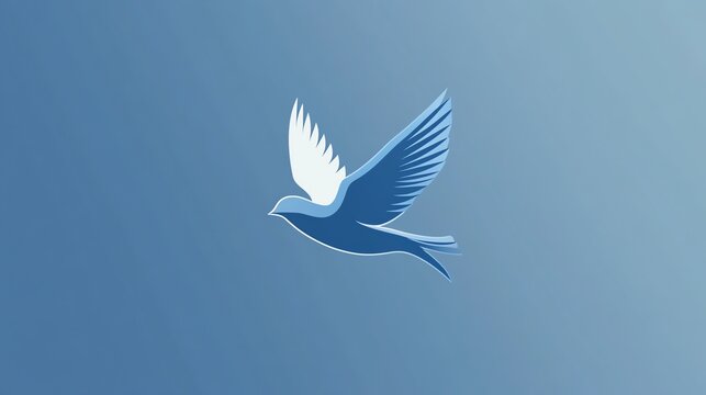 Blue Dove Silhouette in Watercolor with Leaves for International Peace Day Illustration, Symbol of Hope, Unity, and Harmony in Nature