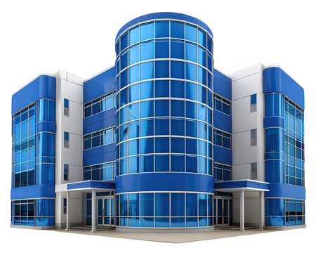 Modern office building with blue glass windows, contemporary architecture, and business district setting, reflecting professional and corporate atmosphere