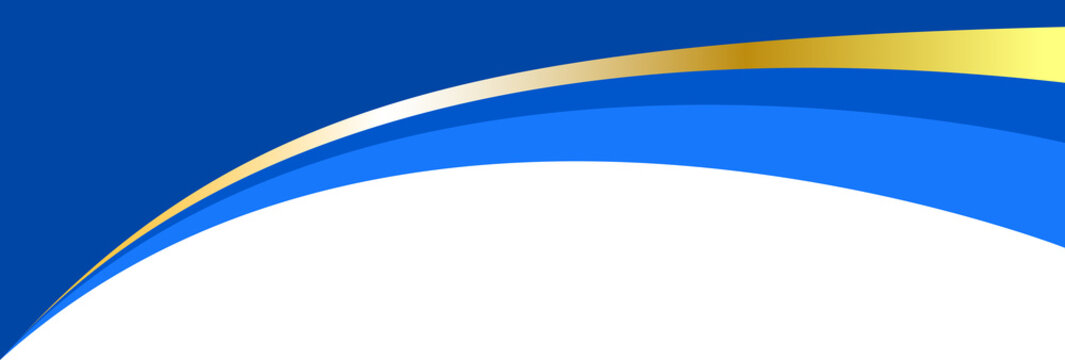 Border shape for banner design. Blue header section with golden line. Abstract bottom for web page. Curved divider template. Wavy horizontal separator