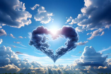 Love Heart Surrounded by Fluffy Blue Clouds. Valentine's Day Concept.