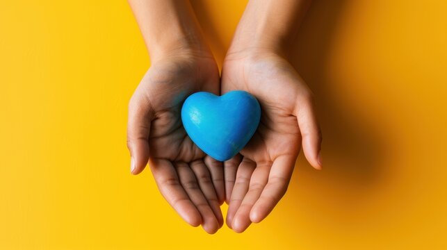 The blue heart in hands.