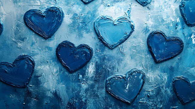 Bohemian Blue Hearts on Textured Canvas, charming little hearts in soft blue tones against a rich, inviting background