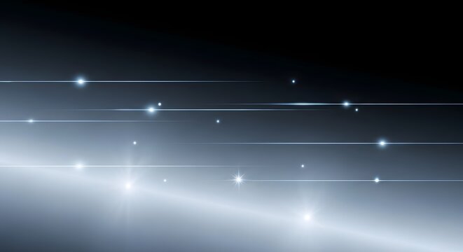Abstract shimmering light streaks and particles on a dark gradient background for event programs.