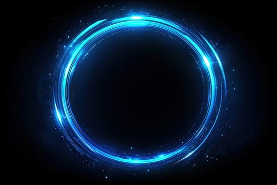 blue circle light frame on black background.Blue light effects on round placeholder for your text on dark background.a blue glowing circle.for futuristic or technology-themed designs.