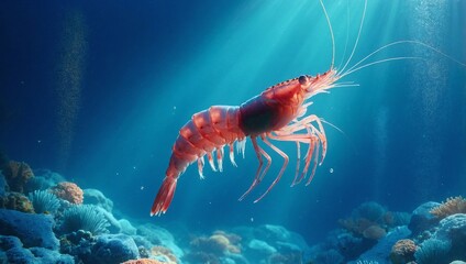 Relaxing tranquility effect background of ocean blue marine water with sunlight rays and bubbles rising in an aquatic abyss