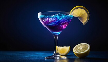 delicious martini cocktail on neon background