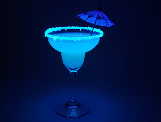 Elegant blue martini with swirling vapor, perfect for upscale bar imagery