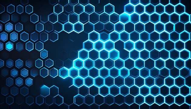 abstract dark blue hexagon pattern neon lights