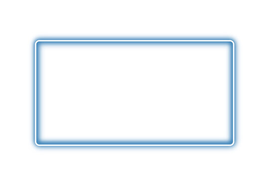 blue glowing neon frame lighting rectangle on transparent background. blue neon frame on white
