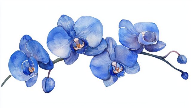 Beautiful floral stock illustration with watercolor blue orchid flower branch.