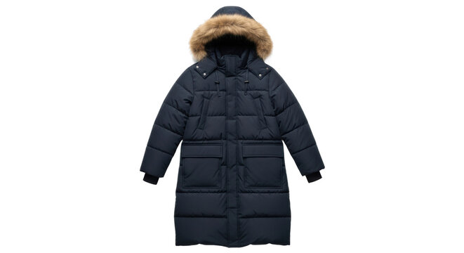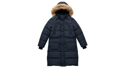 Navy blue winter parka coat with fur hood