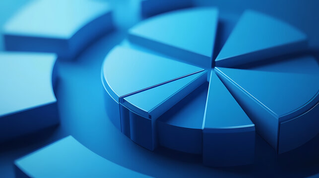 Data visualization. 3d render of monochrome blue pie chart with copy space for banner. business, stock, marketing concept. Monochrome. Illustration