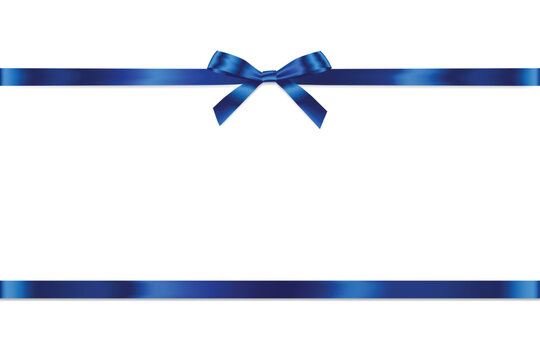 Blue Ribbon Bow Realistic shiny satin with shadow horizontal ribbon for decorate your father's day or wedding invitation card ,greeting card, certificate, coupon or gift boxes vector with copy space