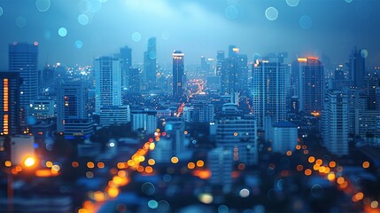 High-rise buildings cityscape in Bangkok city, a little bit blue tone and a bit bokeh effect. Generative AI.
