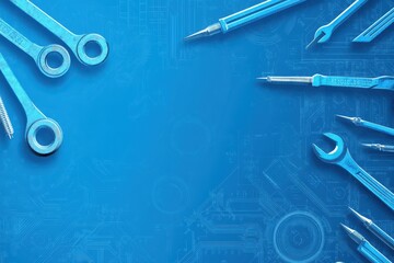 3d rendering technician industry concept abstract blue tools