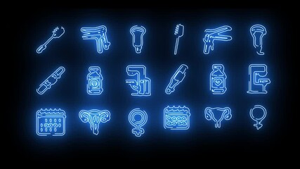 Glowing Neon Blue Tools and Mechanical Equipment Icons