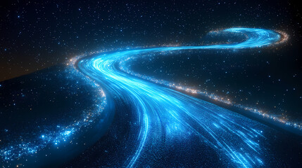 Abstract neon light speedway with vibrant glowing pink and blue trails, future digital highway