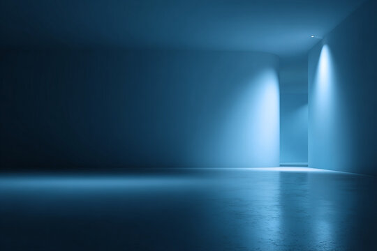 Blue room interior design minimalist architecture spotlight lighting concrete floor