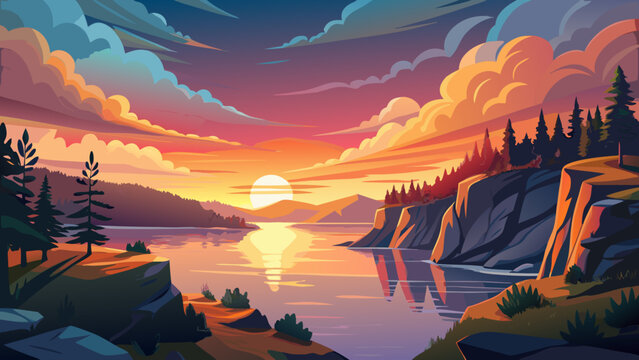 Grand Canyon Landscape Illustration with River and Cliffs