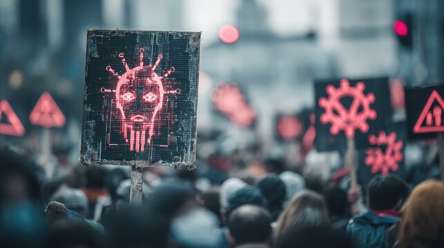 Cyberpunk wolf with glowing geometric jewels, against a colorful blurred city backdrop