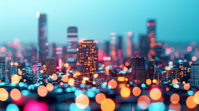 Blur background of vibrant cityscape with colorful lights and futuristic feel creates captivating atmosphere