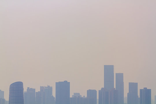 Blurred cityscape background with a bokeh effect A blurry urban landscape with skyscrapers and buildings Generative AI