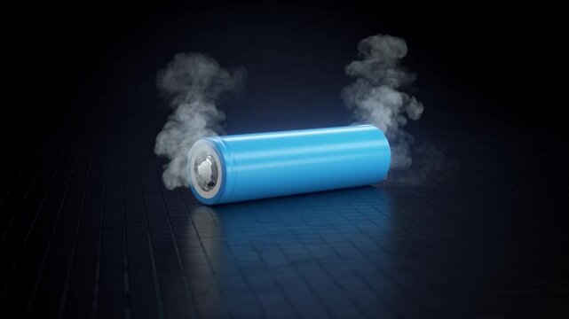 Lithium-ion 21700 cell - smoke, ignition, and fire. 3D Render