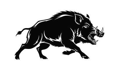 A wild boar charging forward, a powerful symbol of strength and determination, captured in a striking silhouette