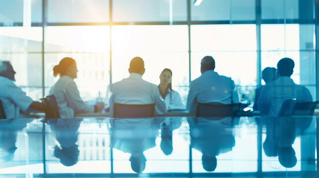 A hospital's board of directors meeting to discuss strategic initiatives. stock image, hd quality, natural look, blog post, health care