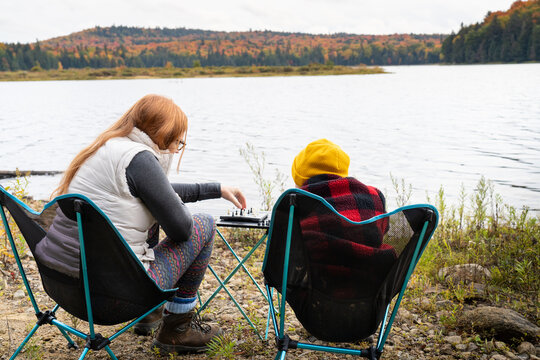 Playing Chess Wilderness Lakeshore Campsite