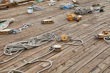 Sailing boat roaps on a deck