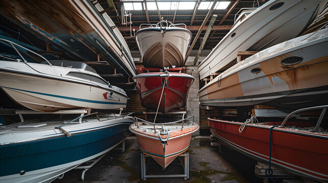 Isometric fishing boat with lobster catch and storage crates at harbor
