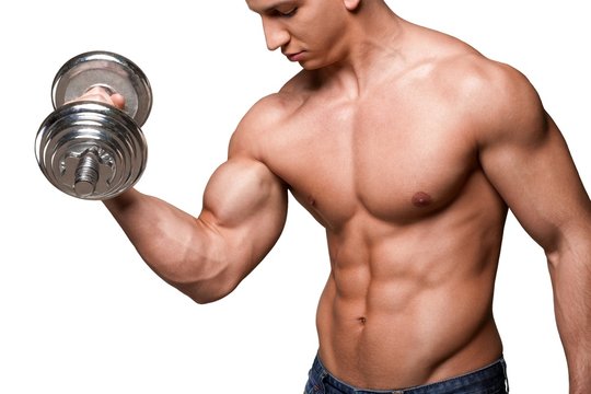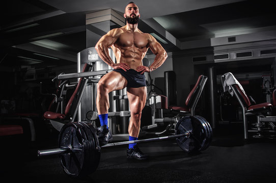 Well-built young bodybuilder doing the strength workout