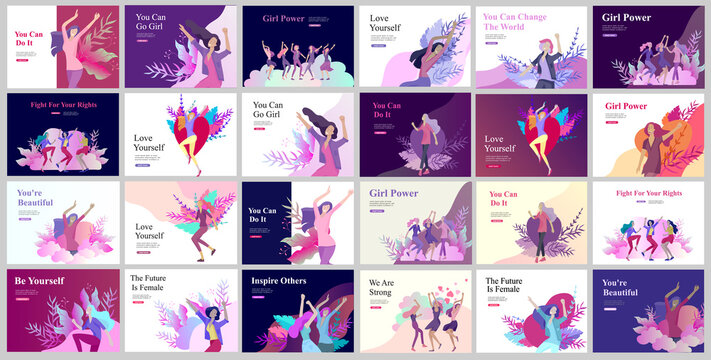 Web page design template for beauty dreams, International Womens Day, girls power, wellness, body care, healthy life, design vector illustration concept for website