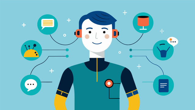 A series of wearable sensors that track body movements and translate them into verbal words or sentences for nonverbal users.. Vector illustration